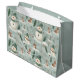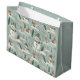 A cute festive design with snowman and deer in a snow scene. Pretty pastels. Festive green Christmas gift bag
