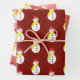 Cute snowman and snow on red Wrapping Paper Sheets. Each sheet features the same snowman in a different red shades.