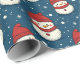 Cute Snowman And Snowflakes Blue Christmas Wrapping Paper