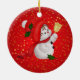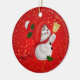 Brighten up your Christmas tree and give a touch of warmth and excitement of the holidays to your Christmas decoration with this charming circle ceramic Christmas tree ornament. Featuring a cute snowman holding a gold christmas bell against golden little stars on red background, this charming ornament is a perfect way to commemorate the holiday season with your family and makes a great gift for all of your loved ones.