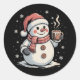 Cute Snowman Drink Coffee Winter Snowflake Xmas Classic Round Sticker