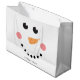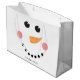 It's a minimalist, geometric design with a clean white background. A kawaii (cute) snowman face with rosy cheeks, a carrot nose, and coals for a mouth.