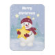 Cute Christmas illustration with snowman in hat and scarf holding a star drawn in cosy pastel blue mint and plum colours and features winter themes like holydays, snow, spruce tree, snowman.