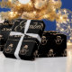 Cute Snowman Pattern Black and Gold Christmas Wrapping Paper