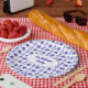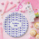 Cute Snowman Snowflakes Pattern Blue and White Christmas Party Plate, you can change or delete the text