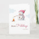 Cute Snowman Roasting Marshmallow Pink Christmas Holiday Card