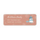 Some cute salmon pink Holiday return address labels with a cute tiny snowman and some random snowflakes . This design is also available in blue and green .