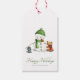 Minimalist Christmas gift tag with an illustration of a snowman and his bear and dog friends. Great for the upcoming season. Illustrated and designed by Patricia Alvarez.