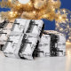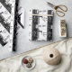The stars a twinkling and the snow has fallen and this cute smiling snowman is looking at his stripy Christmas stocking in anticipation and hoping for Santa to drop by and fill it up with lots of special Christmas gifts. Mr snowman is wearing his best hat and scarf to make a good impression on Father Christmas. I think this happy snowman black and white wrapping paper will bring holiday cheer during the festive season, he’ll make original christmas gift wrap for someone spacial. This is a customisable christmas wrapping paper, you can personalise it with your own text. The original black and white snowman illustration was drawn in pen and ink.