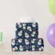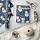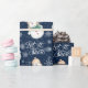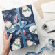 Two cute snowman are featured on this whimsical Christmas wrapping paper. One adorable snowman has on his Santa hat while the other is snug in his woodsman hat. White snowflakes and snow complete the holiday pattern.