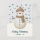 Cute Snowman Snowflakes Drawing Christmas Holiday Postcard. A cosy, Boho-inspired Christmas card featuring cute drawing of a snowman on a snowy hill. Soft earthy tones such as terracotta, cream, and green. Delicate snowflakes are scattered across the postcard, adding a touch of winter magic. The text 'Merry Christmas' is in elegant script. The overall aesthetic exudes a warm, rustic, and modern Bohemian feel, perfect for a stylish yet festive holiday look. Add your name and year.