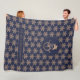 Elegant Custom Fleece Blanket Cute Snowman Snowflakes Pattern Navy Blue and Gold Faux Gold Foil Christmas Season Fleece Blanket for kids of all ages, Add Family Name, Name or Your Text