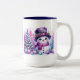 Cute Snowman surrounded by Christmas Trees Two-Tone Coffee Mug