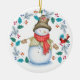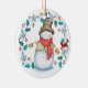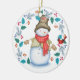 Cute Snowman with Bird Wreath Christmas Ceramic Tree Decoration