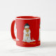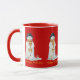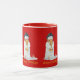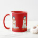 The snowman on this original mug is wearing his best black hat and he has his red and green stripy Christmas stocking tied to a twig in the snow. You can customise this fun christmas mug with your own text. The original cute Christmas illustration is painted in watercolor and is titled “Santa’s Coming.”