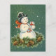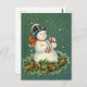 Cute Snowman with Present on Pinecorn Wreath Postcard