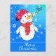 Cute Snowman with Snowflake Drawing Christmas Holiday Postcard