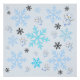 This cute pattern shows snowmen and snowflakes of different sizes on a light blue background, creating a fun winter scene.