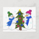 Cute Snowmen Decorating a Tree Postcard