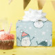 The cheerful snowmen add a heartwarming and fun element, spreading festive vibes and smiles to everyone who receives a gift. The delicate snowflakes, with their frosty charm, perfectly complement the bold blue-green backdrop, evoking the beauty of a crisp, snowy holiday morning.