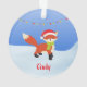 This super cute fox with a Christmas hat wants to wish you or your loved one a happy holiday and a wonderful Christmas. The fox has on cute booties to keep her paws warm, a snuggly green scarf, and a cute jaunty hat. Christmas lights dangle above your or your recipient's name.