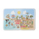 Bright and colourful scene offers a spectacular view of Southern California - wacky characters frolic on the beach and desert of SoCal showcasing Los Angeles, San Diego, Orange County, Santa Barbara, Riverside, Palm Springs, Anza Borrego and Joshua Tree parks as well as the border cities of Tijuana, Tecate and Mexicali. This charming scene has it all – a surfer hangs ten while a killer whale leaps out of the water, zoo animals greet the tourists, a muscular dude flexes his pecs as a T-Rex roars a challenge and a tank moves into position and much more…