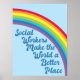 Social workers make the world a better place. Motivational social work gift with a beautiful inspirational quote under a cute rainbow in a blue sky. Pretty social services present.