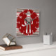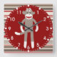Cute Sock Monkey on Red Circle Red Brown Stripes Square Wall Clock