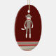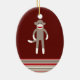 Cute Sock Monkey on Red with Stripes Ceramic Tree Decoration