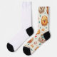 These adorable socks feature playful animal characters and colourful heart and star patterns on a soft, cream background. The cosy, lightweight material ensures comfort for all-day wear, while the charming design adds a fun touch to any outfit. Perfect for lounging at home or adding a cute accent to casual looks, these socks are both stylish and functional. Ideal for kids and adults alike, they make a great gift or personal treat for those who love fun, whimsical designs.