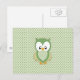Cute soft gree cream and yellow owl postcard