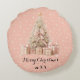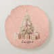 Cute Soft Pink Christmas Tree with custom name Round Cushion