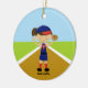 Cute Softball Player in Red & Blue Ornament