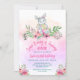 © Socialite Designs & LICENCORS. Cute bunny birthday invitation with a charming watercolor girl bunny rabbit, floral swag and watercolor background. A wonderful invitation for a young girl's birthday party.