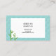 This business card designed for spas, massage therapists, beauty salons etc. features Destei's cartoon illustration of a beautiful bathing spa woman. The woman has black hair that is on a bun and there is a tropical white frangipani flower next to the bun. The woman is wearing a white towel over her body and she has cucumber slices on her eyes. Behind the woman there is a white shelf that has massage stones on it together with two white candles. Under the shelf there are two green bamboo plants bringing even more spa look to the design. The background is a fun pattern of teal / light blue tiles. Above the image there are personalizable text areas for the spa name and for a short description. On the other side there is another personalizable text area for more business information such as address, phone number and website URL.