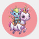Cute Space Alien riding unicorn funny UFO Classic Round Sticker