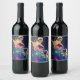 Cute Space Cat vs Space Dog Galaxy Epic Fight In O Wine Label
