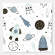 Cute Spaceships Rockets Planet Modern Kids Pattern Wallpaper
