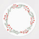Cute white with a rustic leafy dark green and red wreath frame border cheerful happy cute Christmas holiday stickers, labels, envelope seals, gift tags, favour stickers.
