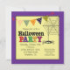 This Halloween Party invitation features a cute theme with spider web and spider accented with bright coloured patterned flag across the top. Customisable text allows you to add your party details. The design is appropriate for a children's Halloween party.