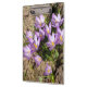 Cute spring crocuses. The photo was taken in May 2023. The poster is suitable for interior design.