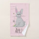 Cute Spring Easter Bunny Rabbit and Name Kids Bath Towel Set