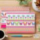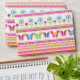 Gorgeous, colourful design featuring retro style drawing of flower garden, butterflies, dots, stripes and zig-zags on a light background. Modern and retro pattern in pink, blue, yellow, purple, green. Sweet, elegant and stylish gift for every woman. Easy to personalise with your own name or text.