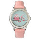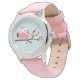 Custom watch features an adorable vector illustration of an owl perched on a cherry blossom or Japanese sakura tree.