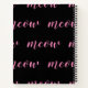 notebook for a funny and cute look with painted spying kitten in ink and watercolor using feminine pink and blue colours in front and meow. typography.