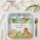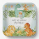 Cute Square Dinosaur Foliage 3rd Birthday Party Paper Plate