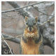 An adorable squirrel with grey fur and reddish stomach eating a nut