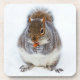 Adorable portrait photograph of a grey squirrel caught nibbling a nut in the snow.