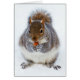 Adorable portrait photograph of a gray squirrel caught nibbling a nut in the snow.