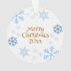 Cute little squirrel in winter hat dancing in the snow on a snowy winter day personalised Christmas ornaments.